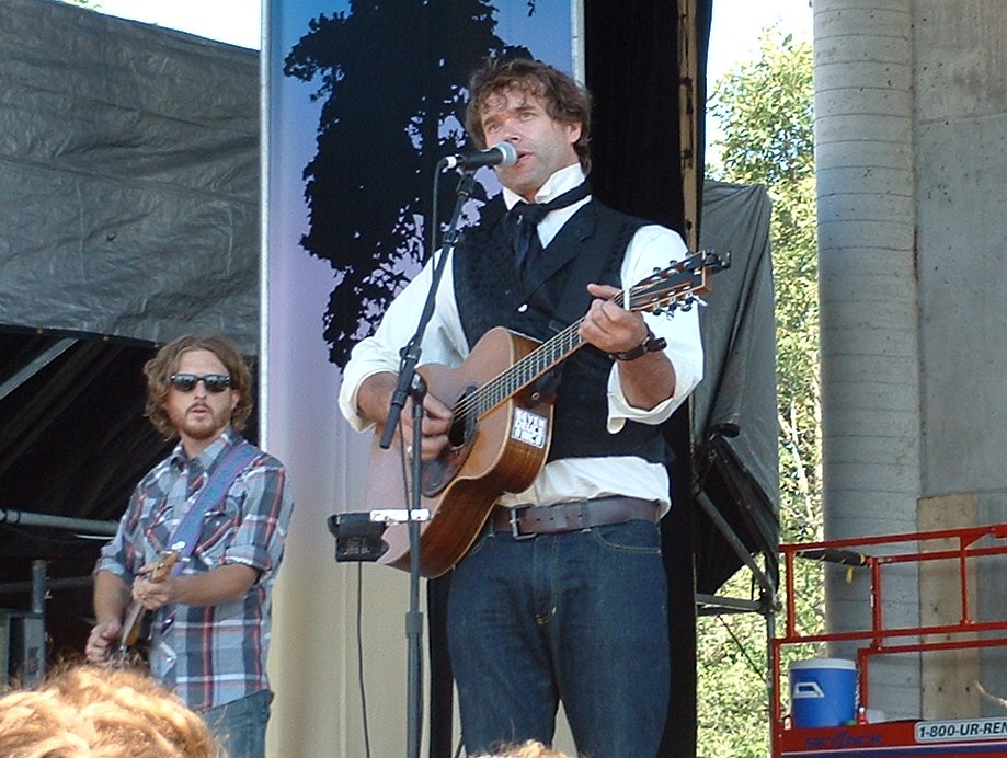 | Corb Lund (center) and guitarist Grant Siemens (left) play the main stage. |