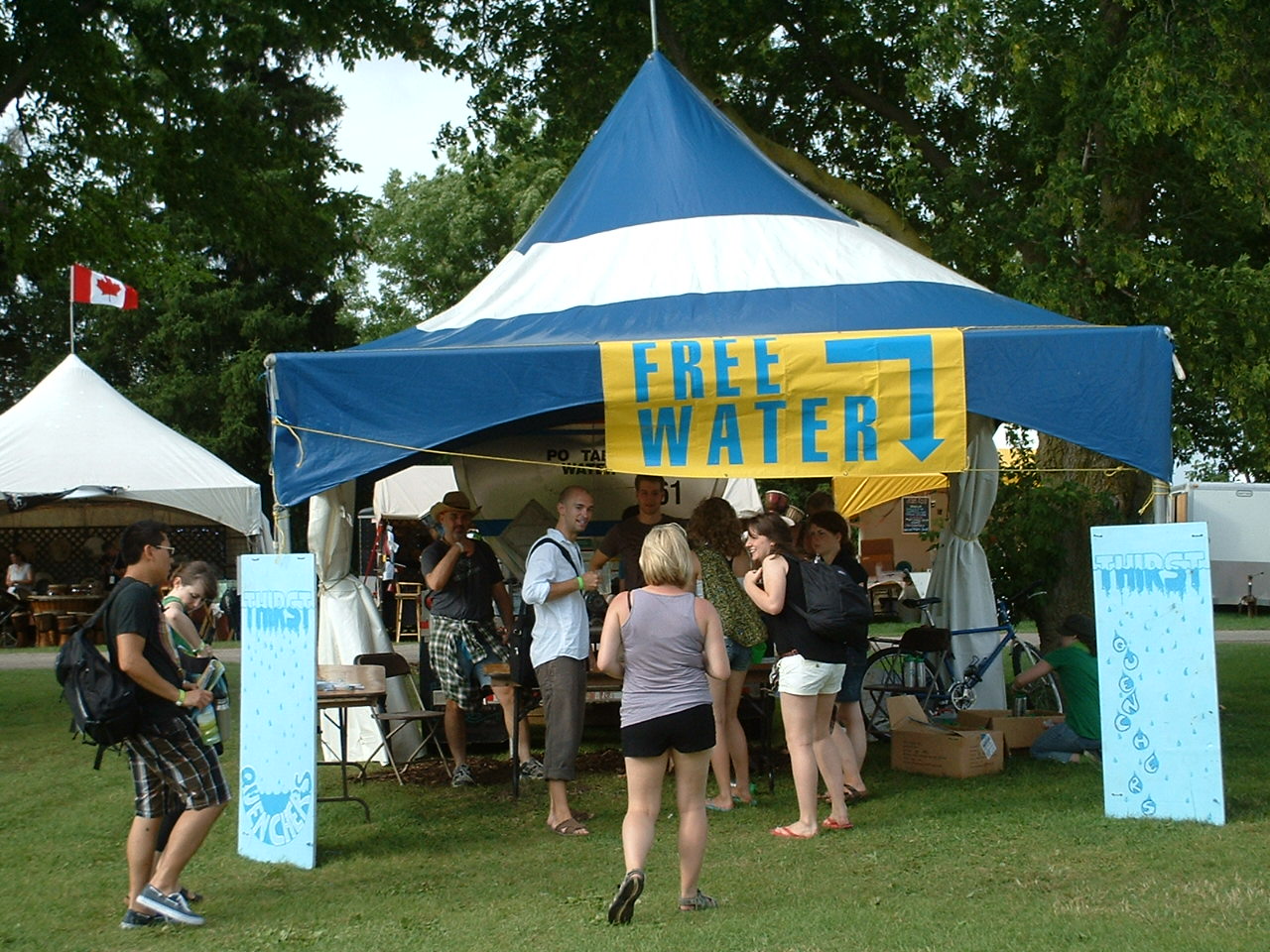 Hillside has a strict environmental mandate. People are encouraged to take a free shuttle bus from downtown Guelph, or to ride their bike and park it securely for free. Drinking water is free if you bring your own container (no plastic bottle litter). Food vendors serve tasty meals on plates that volunteers hand wash for reuse (no wasteful paper plates). Trash is separated and recycled or composted as needed. You even have to buy or bring your own beer mug/wine glass.